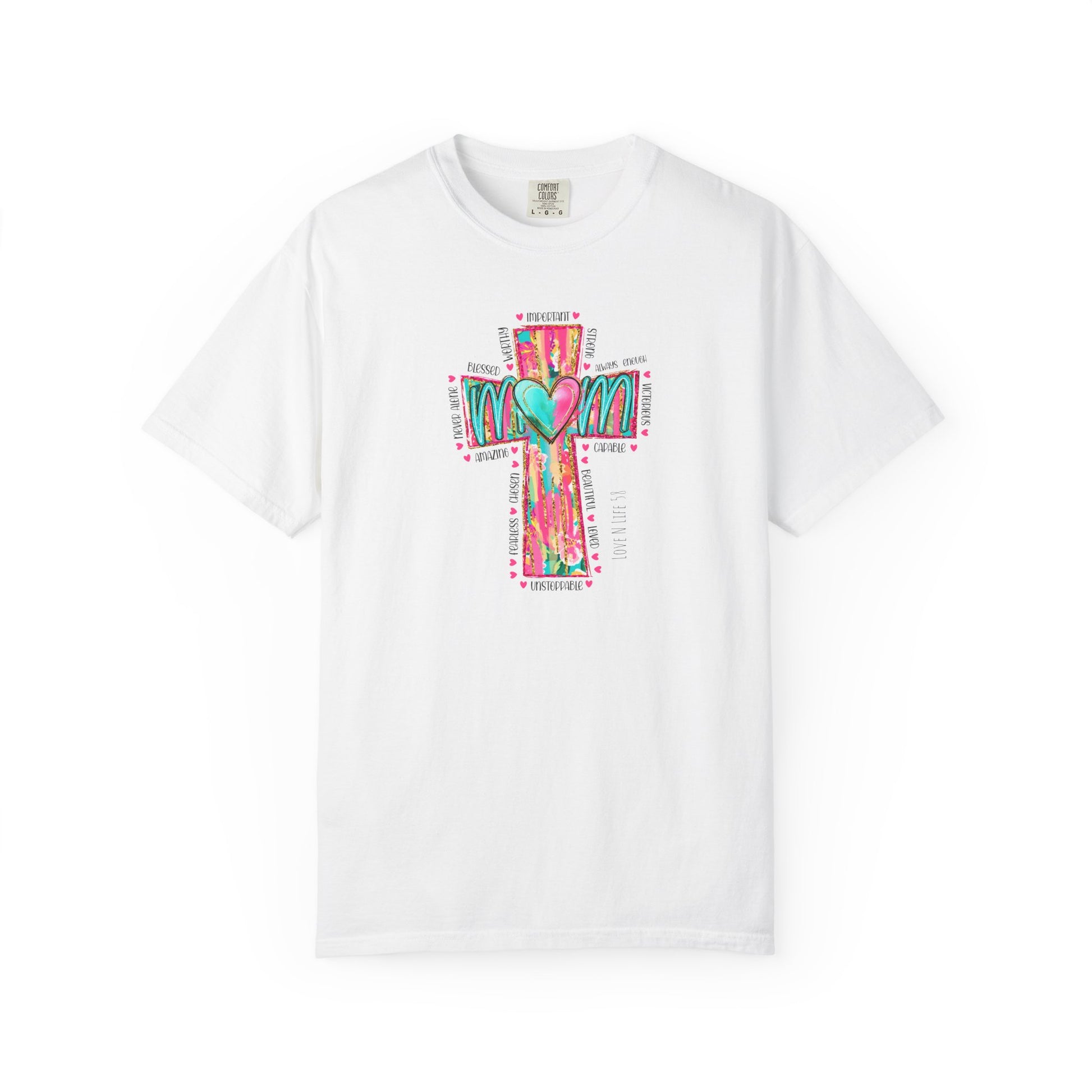 Colorful ‘Mom’ Christian Cross Tee